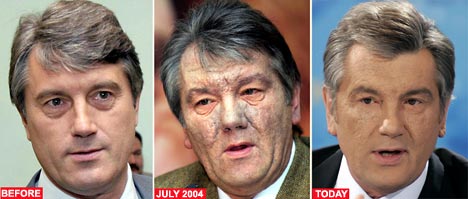 烏克蘭總統(tǒng)尤先科3年前因遭人投毒毀容,一張英俊的臉變得粗糙黯淡不堪,布滿疙瘩。3年的時(shí)間過去,隨著身體的漸漸恢復(fù),尤先科也終于大致恢復(fù)到往昔的容顏。