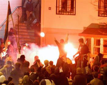 中新網(wǎng)2月22日電 綜合報(bào)道,對(duì)西方國(guó)家支持科索沃獨(dú)立表示憤慨的數(shù)千名塞爾維亞示威者21日在貝爾格萊德攻擊了一些西方國(guó)家的大使館。一些示威者攻擊和進(jìn)入了美國(guó)大使館官邸,并縱火焚燒部分使館建筑。美國(guó)使館當(dāng)時(shí)已閉館,并無人看守。