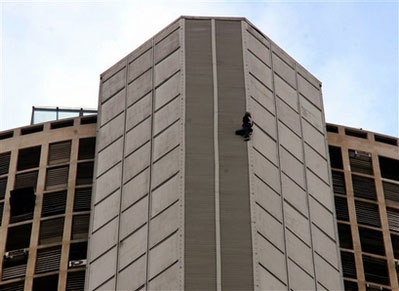 45歲的羅伯特在其個(gè)人網(wǎng)頁上宣稱自己12年的攀爬生涯中,已經(jīng)攀爬過世界各地近70座高樓或紀(jì)念性建筑,包括美國紐約帝國大廈和法國巴黎埃菲爾鐵塔。他的危險(xiǎn)舉動(dòng)讓他50多次被抓進(jìn)警察局。
