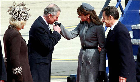 當(dāng)天,“第一夫人”布呂尼身著迪奧高領(lǐng)灰色風(fēng)衣、頭戴一頂與之相配的帽子,與薩科齊款款走下飛機。由于名模出身,為了不喧賓奪主,布呂尼特意穿了一雙黑色的平跟鞋。隨后,薩科齊夫婦在查爾斯夫婦的陪同下走出機場。
