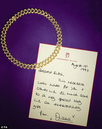 戴安娜王妃生前贈給女巫的金項鏈將拍賣(圖)
