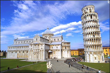 比薩斜塔重1.4萬噸,是一座獨立的鐘樓。自1174年分階段興建,至1370年竣工。因承襲了中世紀的建筑風格及破格地采用圓形設(shè)計而成為意大利地標。天文學家伽利略曾于比薩斜塔進行實驗,因而發(fā)現(xiàn)了自由落體定律。