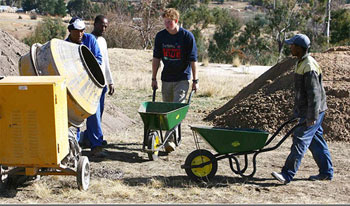 哈里王子與禁衛(wèi)騎兵“皇家藍(lán)軍騎兵團(tuán)”的20多名戰(zhàn)友一起來到非洲南部的萊索托,幫助當(dāng)?shù)匕滩」聝汉蜌埣矁和藿ㄌ厥鈱W(xué)!髦行。哈里王子利用軍隊(duì)中學(xué)習(xí)過的技能,全身心投入到體力勞動(dòng)中。