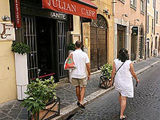 據(jù)悉,這家名為“朱利安咖啡館”的餐廳位于羅馬市歷史中心區(qū)圣天使城堡對面。阿布拉莫維奇日前和女友秘密前往羅馬東城區(qū)游覽時曾經(jīng)到過這家餐廳。