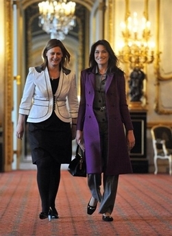 資料圖片:英國首相夫人莎拉(左)與法國第一夫人布呂尼。