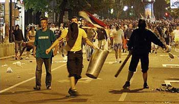 29日晚的抗議集會吸引約2萬人,這一人數比組織者所希望的少。100名據信是貝爾格萊德紅星足球俱樂部支持者隨后離開抗議集會人群,他們向防暴警察扔磚頭、炮竹,警方則用催淚彈和橡皮子彈進行反擊。貝爾格萊德市中心很快變成一個垃圾場,街上到處都是玻璃和其它垃圾,40余人在沖突中受傷,其中包括一名西班牙攝影師。