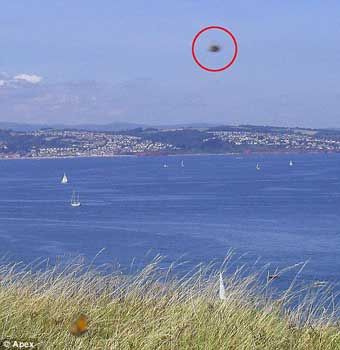 據(jù)英國媒體7月30日報道,英國攝影愛好者約翰-法利上周六在英國著名旅游盛地德文郡布里克瑟姆的貝里海角進行拍攝時,無意中拍到一個神秘的高速活動UFO照片。