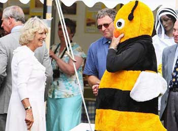 據(jù)臺灣中廣新聞網(wǎng)報道,62歲的渥克穆爾當(dāng)天冒著大熱天,穿上厚重的蜜蜂裝到一處花展向查爾斯夫婦陳情,希望他們支持一項研究計劃,救一救英國蜜蜂。