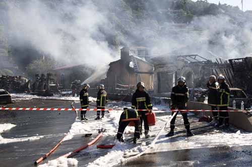 法國一輛油罐卡車撞入家庭旅館引發(fā)大火(圖)