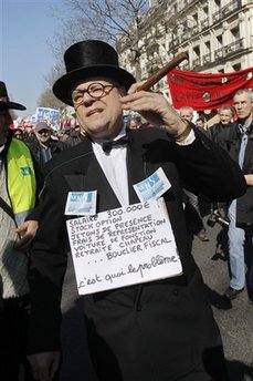 據(jù)悉,這場大罷工的目標是迫使法國總統(tǒng)薩科齊在經(jīng)濟危機日益加深之際,提高工資、保障工作權(quán)。
