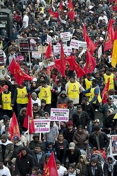 參加示威的主要是居住在英國(guó)的泰米爾人,以及他們的支持者。示威者要求英 國(guó)停止向斯里蘭卡繼續(xù)提供援助。