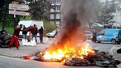 法新社的記者稱,20艘漁船排列在加來港口,抗議者焚燒車胎。工會的領(lǐng)導(dǎo)人稱,20多艘船還封鎖了布倫和敦刻爾克港口。