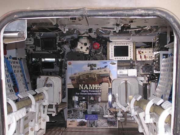目前,該車采用“梅卡瓦”3/4主戰(zhàn)坦克的功率為882kW的AVDS柴油機(jī),未來生產(chǎn)車輛的動(dòng)力裝置有兩種選擇:L-3通信公司戰(zhàn)斗推進(jìn)系統(tǒng)分部的改進(jìn)型AVDS發(fā)動(dòng)機(jī)和基于MTU 883柴油機(jī)的動(dòng)力裝置;蛙囇b備“卡特拉尼特”(Katlanit)遙控武器站,其上裝有車長用12.7毫米或者7.62毫米機(jī)槍,外部安裝60毫米迫擊炮。可在戰(zhàn)場上重新配置遙控武器站,快速把武器改為MK 19式40毫米榴彈發(fā)射器。(王桂芝)