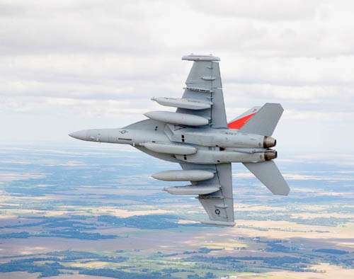 由波音公司生產(chǎn)的EA─18G“咆哮者”電子作戰(zhàn)高性能戰(zhàn)機(jī),是屬于FA─18“大黃蜂”型戰(zhàn)機(jī)的改良型先進(jìn)戰(zhàn)機(jī)。EA─18G“咆哮者”可以攜帶反雷達(dá)空地導(dǎo)彈的電子作戰(zhàn)軍機(jī),能夠在極短的距離內(nèi)起飛降落,同時(shí)有干擾敵方雷達(dá)與電子裝備的能力。美軍在伊拉克就是使用舊版“咆哮者”來(lái)干擾路邊炸彈的引爆訊號(hào)。