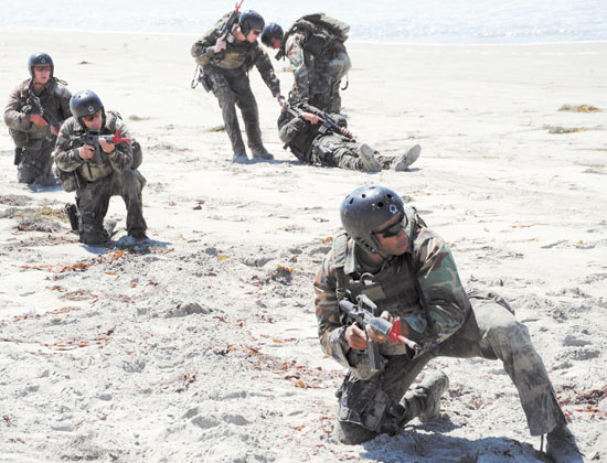 據(jù)了解,海豹突擊隊(duì)候選者在通過嚴(yán)格體能測試后,將會(huì)參加為期6個(gè)月的基礎(chǔ)水下訓(xùn)練課程,分3階段進(jìn)行。第一階段有一個(gè)“地獄周”的訓(xùn)練,在5天半的持續(xù)訓(xùn)練期間,候選者總共的睡眠時(shí)間加在一起最多不超過4個(gè)小時(shí)。在訓(xùn)練中他們要拖著沉重的橡皮艇經(jīng)過沙丘,沖進(jìn)激浪。第二階段主要進(jìn)行長距離潛水練習(xí),該能力也是海豹突擊隊(duì)在眾多特種部隊(duì)中獨(dú)樹一幟的地方。第三階段主要訓(xùn)練海豹突擊隊(duì)學(xué)員對(duì)武器的基本操作技能、破壞技術(shù)和小部隊(duì)的戰(zhàn)術(shù)配合。通過之后,候選者將在陸軍傘兵學(xué)院接受為期3周的基礎(chǔ)空降訓(xùn)練。一名海豹突擊隊(duì)隊(duì)員介紹平時(shí)訓(xùn)練時(shí)說到,從飛機(jī)上跳下對(duì)于普通人來說也許很困難,但對(duì)于海豹突擊隊(duì)員來說卻是非常普通的訓(xùn)練,掌握這項(xiàng)技能的訣竅就是不斷的訓(xùn)練,使其成為一種習(xí)慣。最后,所有的海豹突擊隊(duì)員還必須接受為期3個(gè)月的海豹突擊隊(duì)?wèi)?zhàn)術(shù)訓(xùn)練項(xiàng)目,完成這一項(xiàng)目后,他們就成為一名令人羨慕的海豹突擊隊(duì)員了。