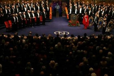 中新網12月12日電 綜合報道,2007年諾貝爾獎頒獎典禮近日分別在挪威首都奧斯陸和瑞典首都斯德哥爾摩隆重舉行。不同領域的多位獲獎者呼吁突破學科和國家界限,應對全球變暖等人類共同面對的挑戰(zhàn)。瑞典國王,王后等王室成員還與諾貝爾獎獲得者共享大餐。