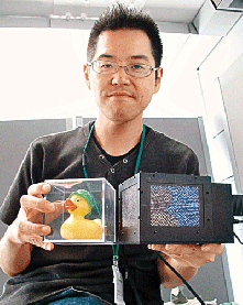 據(jù)香港《文匯報(bào)》報(bào)道,日本信息與傳播研究院的科研人員說,假如你的桌子上有一張女朋友正在朝你微笑的照片,她未來就會(huì)以三維立體影像出現(xiàn),在一個(gè)10厘米高的透明盒子里繼續(xù)微笑。除了這種用途外,老人們能用它去看不在身邊的子女,商務(wù)人士可以用它觀看產(chǎn)品的雛形,老師也可以用它作直觀立體的教學(xué)。
