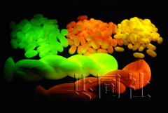 這種蠶被導(dǎo)入了水母、珊瑚等的熒光蛋白質(zhì)基因,所結(jié)的繭在自然光照射下呈淡綠色或粉色,但經(jīng)藍(lán)色發(fā)光二極管等光線照射后,通過濾鏡觀察則呈熒光色。