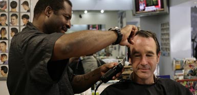 英國(guó)《泰晤士報(bào)》的記者馬丁·弗萊切爾近日就找到扎里夫,體驗(yàn)了一把“坐在奧巴馬平時(shí)理發(fā)的椅子上,由奧巴馬的理發(fā)師用同一把剪刀和梳子,剪出同一個(gè)發(fā)型”的感覺(jué)。扎里夫一邊給馬丁理發(fā),一邊聊道:奧巴馬上周一還到店里理發(fā)。他說(shuō),奧巴馬平時(shí)經(jīng)常從他在海德公園社區(qū)的家散步走到店里理發(fā),而如今,他每次來(lái)都是一個(gè)車隊(duì)跟著,至少會(huì)有20名保鏢嚴(yán)守四周,“天花板上都恨不得有保鏢”。已經(jīng)在店里的客人可以留下,而其他顧客則不再準(zhǔn)許入內(nèi)。他必須在20分鐘內(nèi)給奧巴馬理完,否則店外就會(huì)圍滿了蜂擁而至的人。除了一個(gè)人之外,從來(lái)沒(méi)有人抗議過(guò)奧巴馬插隊(duì)。扎里夫幽默地說(shuō),“那個(gè)人肯定是個(gè)共和黨人”。
