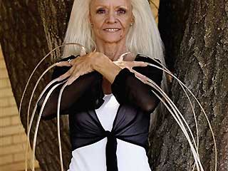美國的蕾夢女士從1979年以后,就沒有剪過指甲,去年她十指指甲總長已經(jīng)達到853公分,其中最長的一根是右手大拇指的89公分。