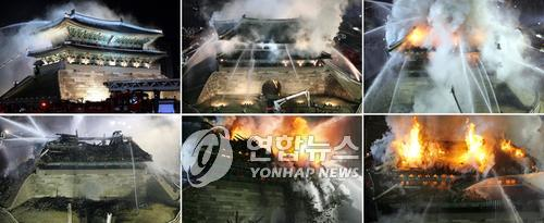 韓國第一號國寶“崇禮門”燒毀塌落損失慘重(圖)