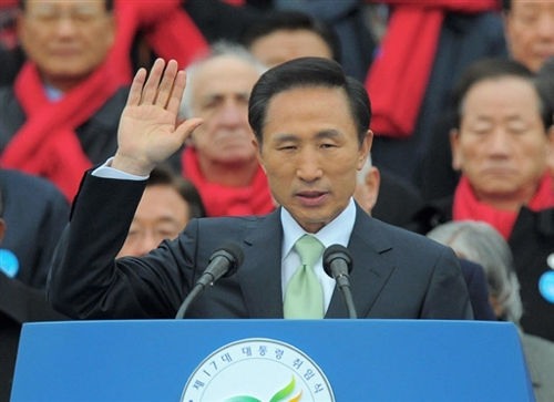 中新網(wǎng)2月26日電 李明博25日正式宣誓就任為第17任韓國(guó)總統(tǒng),他在就職演說中強(qiáng)調(diào)復(fù)蘇經(jīng)濟(jì),希望引領(lǐng)韓國(guó)邁向先進(jìn)化的新層次。典禮后他立即啟動(dòng)“四強(qiáng)外交”,先后與日本、中國(guó)、俄羅斯和美國(guó)的代表會(huì)晤,貫徹他的全球外交政策。