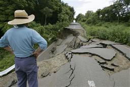 日本強(qiáng)烈地震導(dǎo)致公路路面嚴(yán)重開裂。