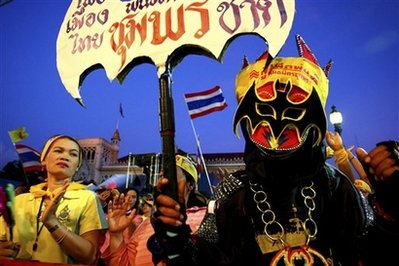 泰國的反政府示威者誓要推翻總理沙馬政府,對(duì)于緊急狀態(tài)令都嗤之以鼻,他們相信泰王受到威脅,愿為泰王而死。