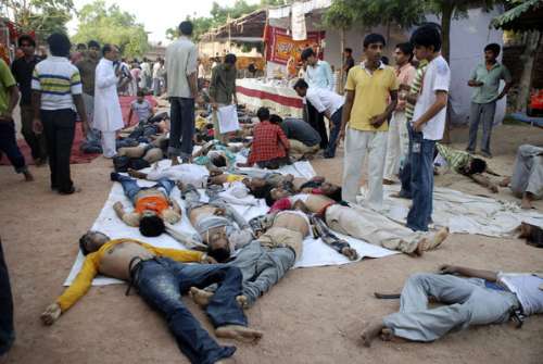 在印度,信仰印度教的教徒每逢宗教節(jié)日有舉家到廟宇祭拜的習(xí)俗。許多廟宇年久失修,且都建于山頂,周圍道路狹窄,加上當(dāng)?shù)鼐绞栌诠芾恚灾旅磕曜诮坦?jié)日期間幾乎都會(huì)發(fā)生人踩人慘劇。