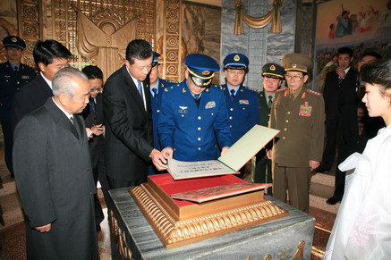 中朝兩國人員在友誼塔前向烈士們默哀致意,并在儀式后參觀了友誼塔。崔永林秘書長、劉曉明大使和宋琨團(tuán)長等翻閱了保存在友誼塔內(nèi)的志愿軍烈士名冊(cè)。崔永林說,58年前,中國人民志愿軍入朝作戰(zhàn),與朝鮮人民和軍隊(duì)并肩戰(zhàn)斗,一同打敗了侵略者。朝鮮黨、政府和人民十分珍視兩國人民和兩國軍隊(duì)用鮮血凝成的深厚友誼,對(duì)中國人民志愿軍的豐功偉績永志不忘。劉大使感謝朝方為中國人民志愿軍入朝參戰(zhàn)58周年舉行紀(jì)念活動(dòng),并表示中朝兩國人民在保衛(wèi)家園、維護(hù)和平的共同事業(yè)中結(jié)下了深厚的友誼。在兩國最高領(lǐng)導(dǎo)人的親切關(guān)心下,兩國人民繼承和發(fā)揚(yáng)這一友好傳統(tǒng),使兩國友好合作關(guān)系不斷得到深化和發(fā)展。