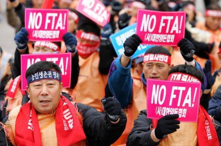 韓國(guó)近萬(wàn)名農(nóng)民示威要求國(guó)會(huì)否決韓美自貿(mào)協(xié)定。