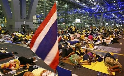 據(jù)悉,約2000名示威者闖入新國際機(jī)場(chǎng)客運(yùn)大樓的離境大堂,泰國機(jī)場(chǎng)公司宣布在當(dāng)?shù)貢r(shí)間25日晚上9時(shí)起暫時(shí)關(guān)閉機(jī)場(chǎng),準(zhǔn)備在機(jī)場(chǎng)降落的航機(jī)要轉(zhuǎn)飛清邁、布吉和其它地區(qū)的機(jī)場(chǎng),數(shù)以千計(jì)旅客滯留。