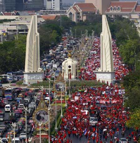 這是阿披實上臺以來反獨聯(lián)在曼谷舉行的第三次大規(guī)模反政府集會示威活動。去年十二月二十九日和三十日,反獨聯(lián)的支持者封鎖泰國國會大院,迫使阿披實臨時使用外交部代替國會大廈發(fā)表施政綱領。今年一月三十一日,反獨聯(lián)在王家田廣場和總理府前舉行大規(guī)模集會,要求阿披實解散國會下議院、加快對去年占領總理府和曼谷兩個機場的人民民主聯(lián)盟(民盟)領導人的起訴進程、解除支持民盟的外長喀實的職務。