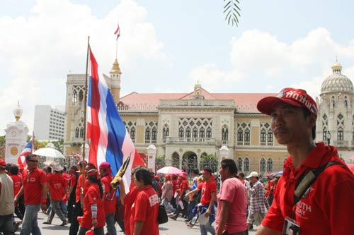 中新網(wǎng)3月26日電 泰國反政府的紅衫軍26日號(hào)召約3萬支持者聚集曼谷示威,從皇家田廣場(chǎng)游行至總理府,下午展開包圍行動(dòng),并揚(yáng)言這次示威至少持續(xù)一個(gè)月。