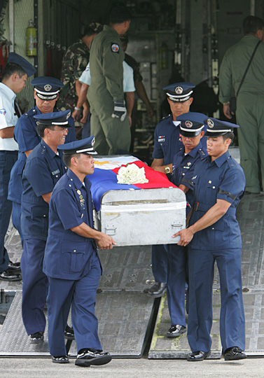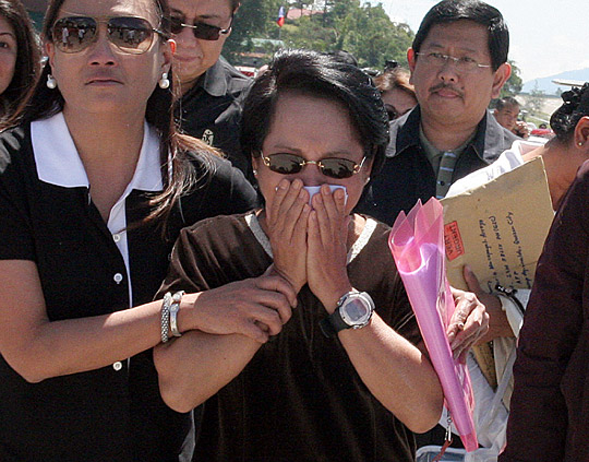 菲律賓總統(tǒng)阿羅約在走過(guò)遇難者的靈柩時(shí)痛哭失聲。
