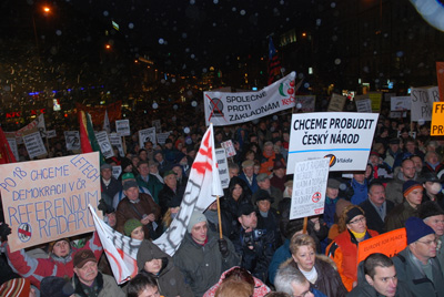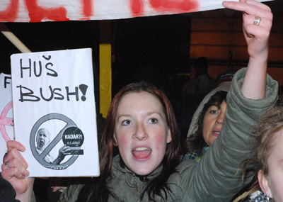 中新網(wǎng)11月18日電 2000多名來(lái)自捷克各地的民眾和歐洲其它國(guó)家反戰(zhàn)組織的代表11月17日冒著蒙蒙雨雪在首都布拉格舉行集會(huì)和游行,反對(duì)美國(guó)在捷克建立中歐導(dǎo)彈防御系統(tǒng)的雷達(dá)基地。(黃頻)