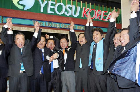 中新網(wǎng)11月27日電    據(jù)韓國(guó)《朝鮮日?qǐng)?bào)》報(bào)道,27日凌晨(韓國(guó)時(shí)間)在法國(guó)巴黎舉行的國(guó)際展覽局(BIE)大會(huì)上,韓國(guó)麗水與摩洛哥丹吉爾參加第二次投票,麗水獲得77票,以14票之差戰(zhàn)勝丹吉爾,獲得了2012年世界博覽會(huì)的主辦權(quán)。