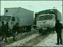 有報道說,中亞地區(qū)近日連續(xù)遭遇暴雪襲擊,一名司機說,道路變得異常危險。