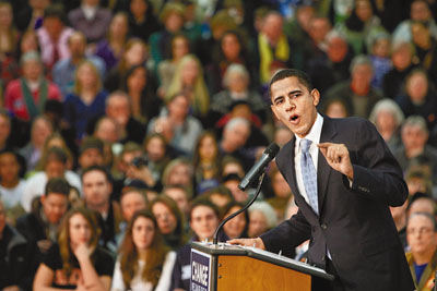 奧巴馬在艾州黨派會議勝出后氣勢如虹,轉戰(zhàn)新州乘勝追擊,他繼續(xù)大打變革牌,向支持者承諾為國家?guī)磙D變,希望新州選民支持他,“四天后的新州,你有機會令美國改變”。