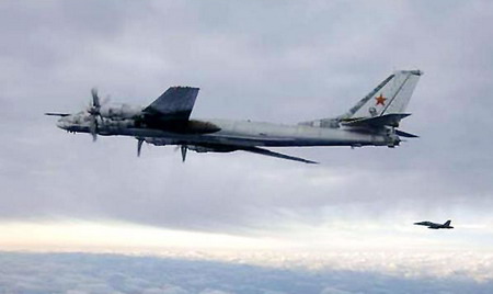 英報(bào)公布美F/A-18戰(zhàn)機(jī)跟蹤俄圖-95轟炸機(jī)圖片(圖)