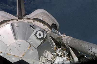 中新網(wǎng)3月13日電 綜合報(bào)道,美國當(dāng)?shù)貢r(shí)間12日晚,“奮進(jìn)”號航天飛機(jī)與國際空間站成功對接,但比原定時(shí)間遲了40分鐘。