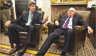 中新網3月25日電 《紐約時報》揭發(fā)代表美國共和黨參選總統(tǒng)的麥凱恩,曾于2000年競逐提名失敗后心灰意冷,考慮改投民主黨。2004年大選中,他更派人與民主黨的總統(tǒng)參選人克里會面,商討要成為對方的副總統(tǒng),他對共和黨的忠誠成疑。