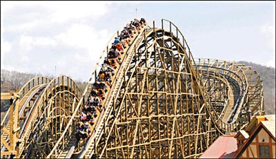 愛寶樂園是韓國最大的室外游樂場;而T-EXPRESS是由瑞士一家公司制造的木制游樂設(shè)施,線路總長1.6公里,是全球最陡峭、全韓國最高最快的過山車,時速達(dá)104公里,本月14日隆重啟用,但運作了僅9天便出意外。
