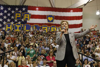 賓州共有158張黨代表票,選前的民調(diào)顯示,希拉里以48%支持率,領(lǐng)先奧巴馬約5個百分點。賓州的藍領(lǐng)階層較多,希拉里和奧巴馬前日都刻意親近工人階級,希拉里去酒吧喝啤酒,奧巴馬則登上一列古老列車,到訪貧窮小鎮(zhèn)。