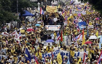 民盟的支持者其實已經(jīng)封鎖了政府大廈附近一條道路近四個星期,股票市場因此顯得不穩(wěn)定。昨天的示威并沒有如人們所擔心的出現(xiàn)暴力場面,股市指數(shù)便升了近4%。
