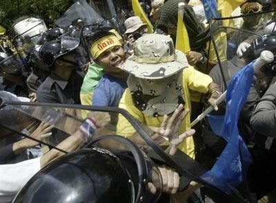泰國示威民眾與警察沖突。
