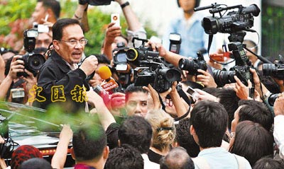 中新網(wǎng)7月1日電 馬來(lái)西亞前副總理安瓦爾再度卷入雞奸案后,前天藏身吉隆坡的土耳其大使館,他獲政府保證人身安全后,昨晚自愿離開(kāi)。