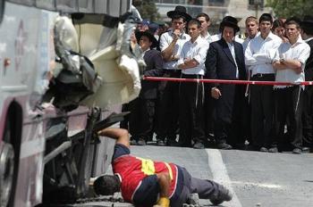 這起事件發(fā)生在耶路撒冷市中心,一輛推土機(jī)在公路上行駛,先撞上一輛卡車、一輛轎車,再把一輛公交車撞翻,至少已經(jīng)造成包括該司機(jī)在內(nèi)4人死亡,近70人受傷。