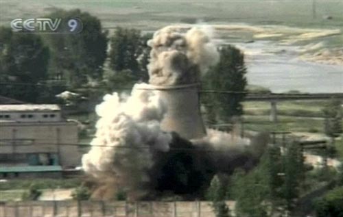 6月26日,朝鮮向六方會談主席國提交了核申報清單,并隨后炸毀了寧邊核設(shè)施的冷卻塔塔。美國方面則表示,將在45天內(nèi)將朝鮮從“支持恐怖主義國家”的名單上刪除,并將終止對朝適用《敵國貿(mào)易法》等關(guān)鍵制裁。