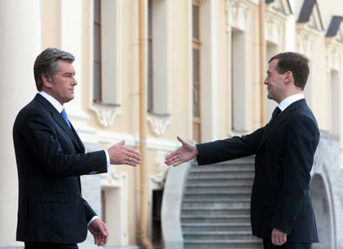 俄羅斯總統(tǒng)梅德韋杰夫(右)今年六月會(huì)見到訪的烏克蘭總統(tǒng)尤先科(左)。
